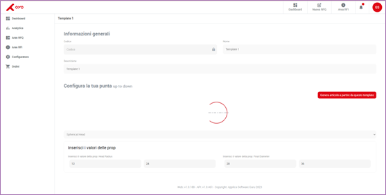 Completata la configurazione, cliccando il bottone “Salva” verrà salvato il tuo articolo configurato. Puoi accedere ai tuoi articoli configurati cliccando “i miei articoli” nella sezione “configuratore” nella sidebar a sinistra.